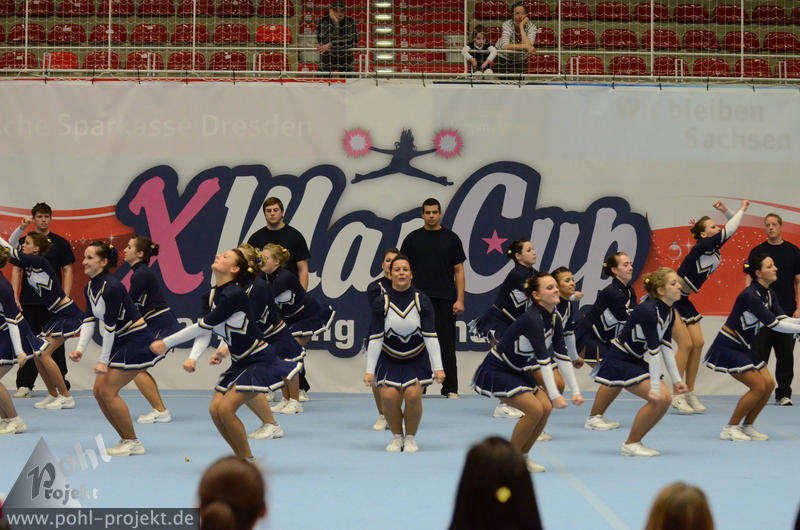 XMasCup 2011 vs Blue Pearls, Pretty Pearls, Mini Pearls und Shiny Pearls von den Dresden Monarchs, CATWALK, Kiddy Cats, Lunicats, LCV Dancer und DMC vom Lunatics Cheerleder e.V., Leonids und Cheeky Lionettes von den Leipzig Lions, Black Lions, Blue Monties, Black Maniacs und Dancing Maniacs vom CVV CheerMANIA Auerbach e.V., FlipBeez, FreeMotion und Showcolate vom SC DHfK Leipzig, Golden Dynamites, Dynaminis und Dynamix vom Cheerleader verein Dresden, Sweet Angelz, Junior Angelz, Crazy Angelz und White Angelz von Angelz Cheerleader Plauen, Wild Up von ETC Crimmitschau, FOC Four One Clover vom BV Chemnitz 99, Move it Peewees und Move it Juniors vom Move it e.V. Erfurt, MJ`s5 vom ZFC Meuselwitz, Blizzards und Calling 112 vom SpVgg Spitzgrund 72 e.V., Plantastics, Dancing Leaves SR und Dancing Leaves JR vom SV Grün Weiß Mohsdorf, Little Arrows vom Arrows Pirna e.V., Peaches Juniors GS vom The Peaches Cheerleader Zwickau, SG xyztitle the flying V aus Riesa am 3.12.2011 in Dresden - Margon-Arena, Football - Bilder vom Spiel