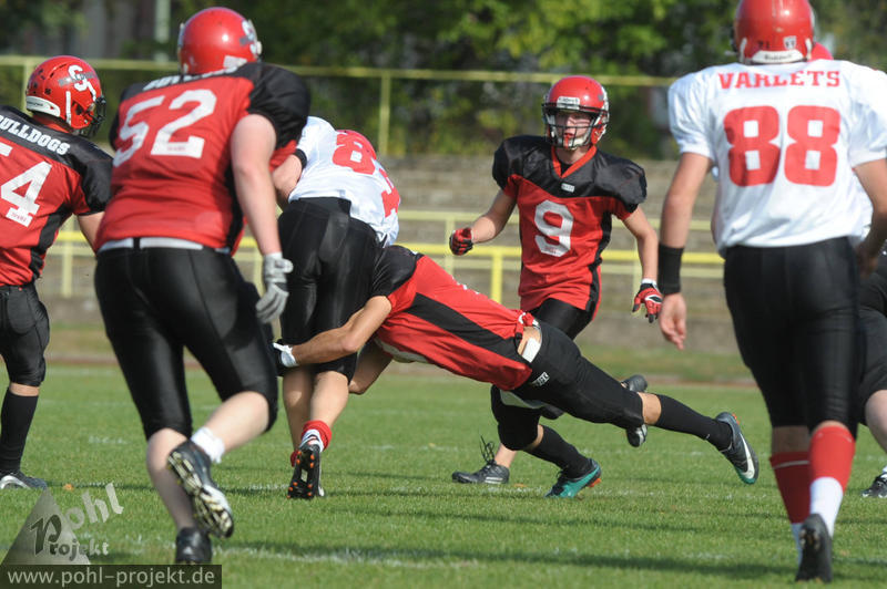 Spandau Bulldogs Jugend vs Chemnitz Varlets am 23.9.2012 in Berlin - Spandau - Helmut-Schleusener-Stadion, Football - Bilder vom Spiel
