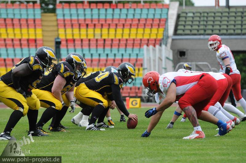 Berlin Adler vs Lübeck Cougars am 13.5.2012 in Berlin - Friedrich-Ludwig-Jahn-Stadion , Football - Bilder vom Spiel