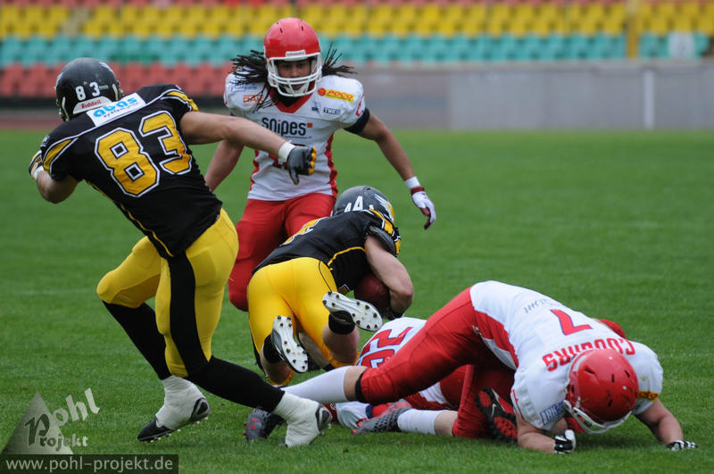 Berlin Adler vs Lübeck Cougars am 13.5.2012 in Berlin - Friedrich-Ludwig-Jahn-Stadion , Football - Bilder vom Spiel