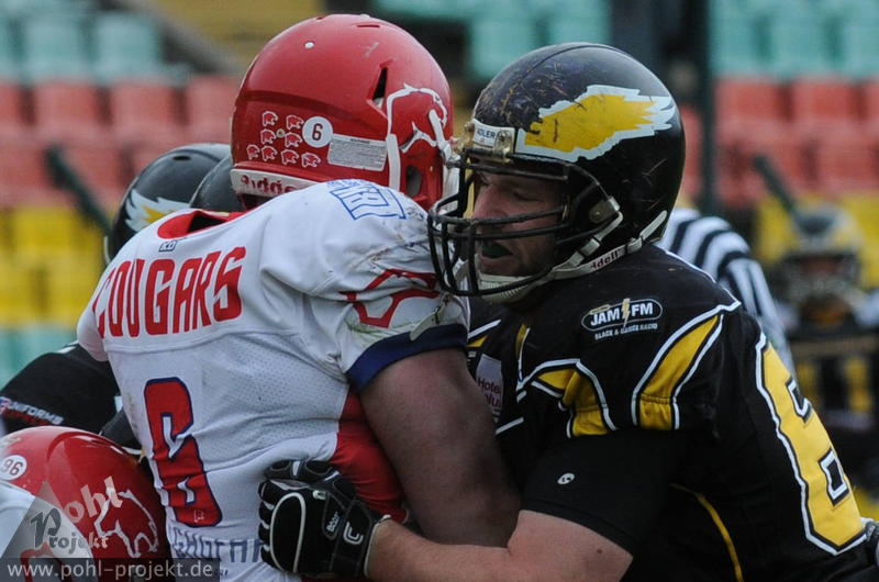 Berlin Adler vs Lübeck Cougars am 13.5.2012 in Berlin - Friedrich-Ludwig-Jahn-Stadion , Football - Bilder vom Spiel