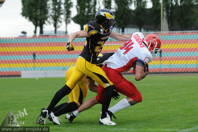 Berlin Adler vs Lübeck Cougars am 13.5.2012 in Berlin - Friedrich-Ludwig-Jahn-Stadion , Football - Bilder vom Spiel