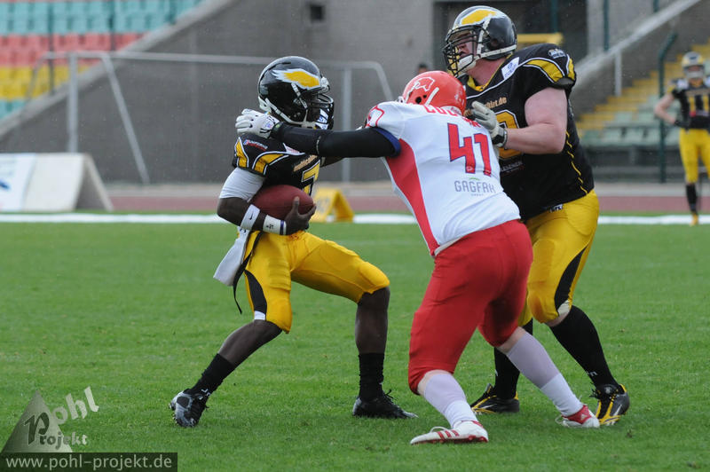 Berlin Adler vs Lübeck Cougars am 13.5.2012 in Berlin - Friedrich-Ludwig-Jahn-Stadion , Football - Bilder vom Spiel