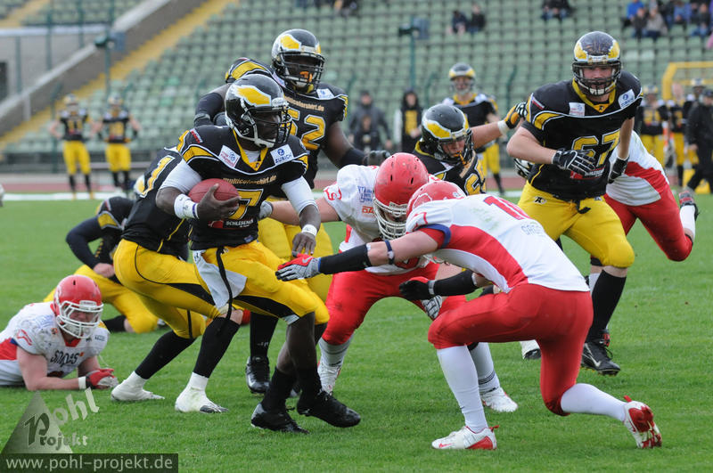 Berlin Adler vs Lübeck Cougars am 13.5.2012 in Berlin - Friedrich-Ludwig-Jahn-Stadion , Football - Bilder vom Spiel