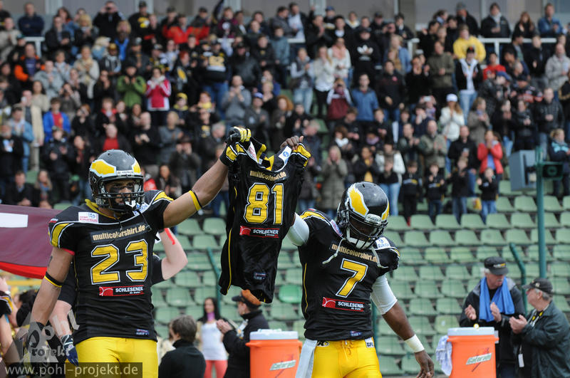 Berlin Adler vs Lübeck Cougars am 13.5.2012 in Berlin - Friedrich-Ludwig-Jahn-Stadion , Football - Bilder vom Spiel