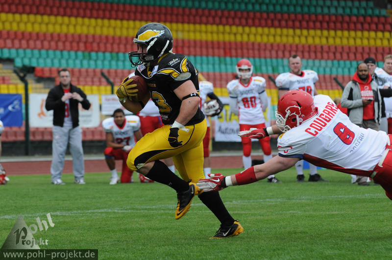 Berlin Adler vs Lübeck Cougars am 13.5.2012 in Berlin - Friedrich-Ludwig-Jahn-Stadion , Football - Bilder vom Spiel