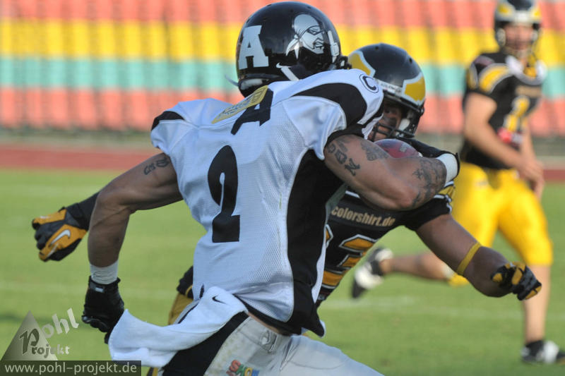 Berlin Adler vs Berlin Rebels am 18.8.2012 in Berlin - Friedrich-Ludwig-Jahn-Stadion , Football - Bilder vom Spiel