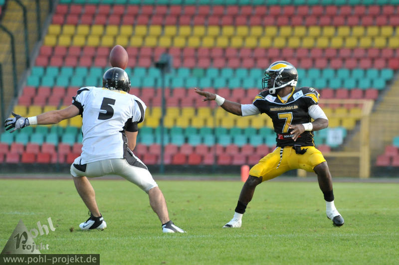 Berlin Adler vs Berlin Rebels am 18.8.2012 in Berlin - Friedrich-Ludwig-Jahn-Stadion , Football - Bilder vom Spiel