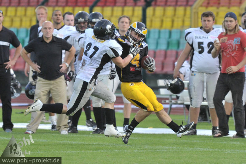 Berlin Adler vs Berlin Rebels am 18.8.2012 in Berlin - Friedrich-Ludwig-Jahn-Stadion , Football - Bilder vom Spiel