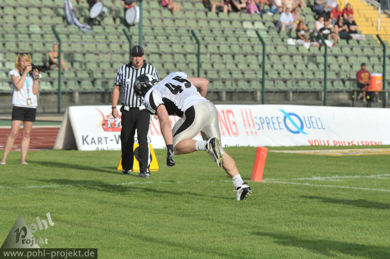Berlin Adler vs Berlin Rebels am 18.8.2012 in Berlin - Friedrich-Ludwig-Jahn-Stadion , Football - Bilder vom Spiel