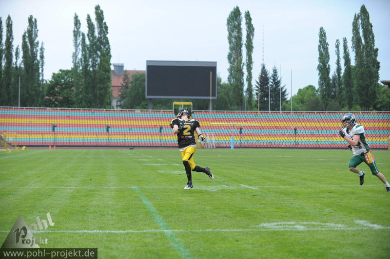 Berlin Adler vs Kiel Baltic Hurricanes am 11.5.2013 in Berlin - Friedrich-Ludwig-Jahn-Stadion , Football - Bilder vom Spiel