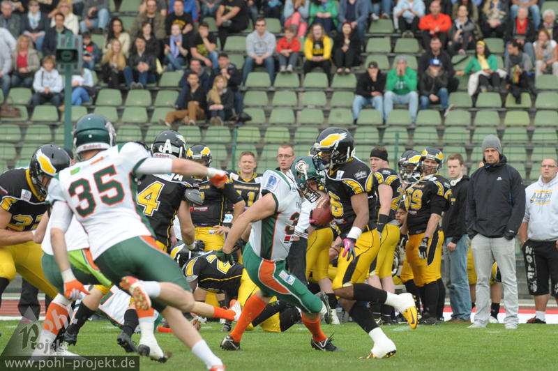 Berlin Adler vs Kiel Baltic Hurricanes am 11.5.2013 in Berlin - Friedrich-Ludwig-Jahn-Stadion , Football - Bilder vom Spiel