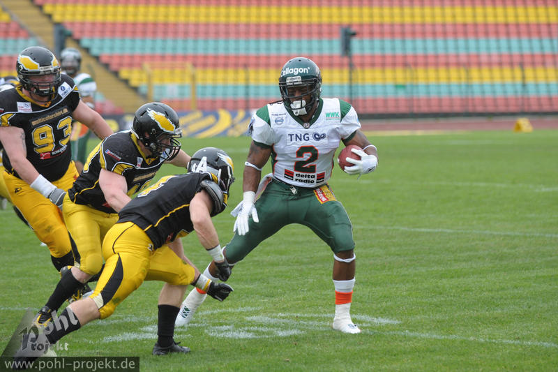 Berlin Adler vs Kiel Baltic Hurricanes am 11.5.2013 in Berlin - Friedrich-Ludwig-Jahn-Stadion , Football - Bilder vom Spiel