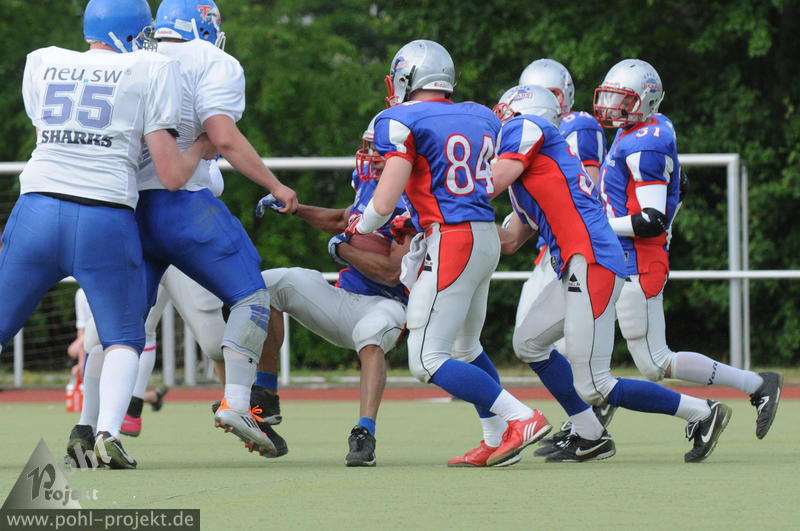 Berlin Bears vs Neubrandenburg Tollense Sharks am 10.6.2012 in Berlin - Sportplatz Lipschitzallee, Football - Bilder vom Spiel