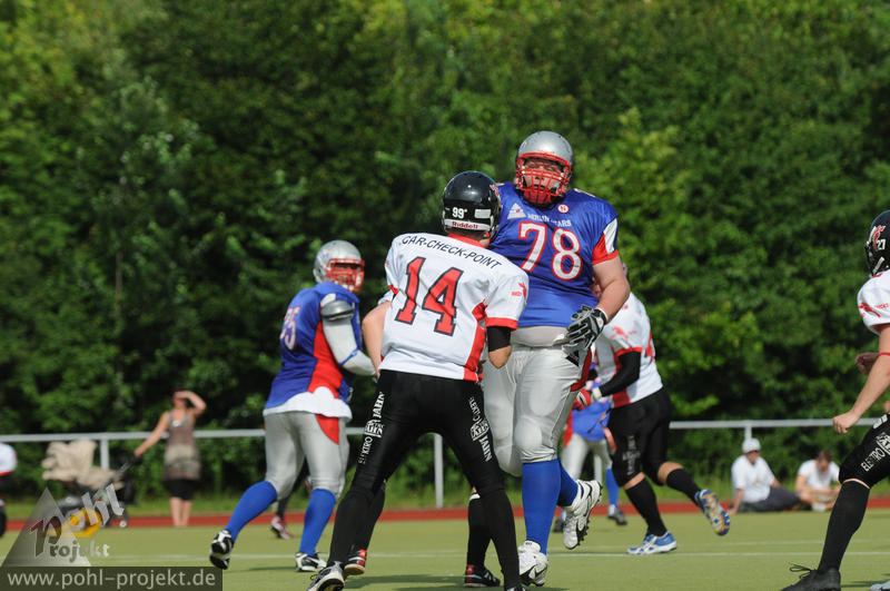 Berlin Bears vs Frankfurt-Oder Red Cocks am 28.7.2012 in Berlin - DEGEWO-Stadion Lipschitzallee, Football - Bilder vom Spiel