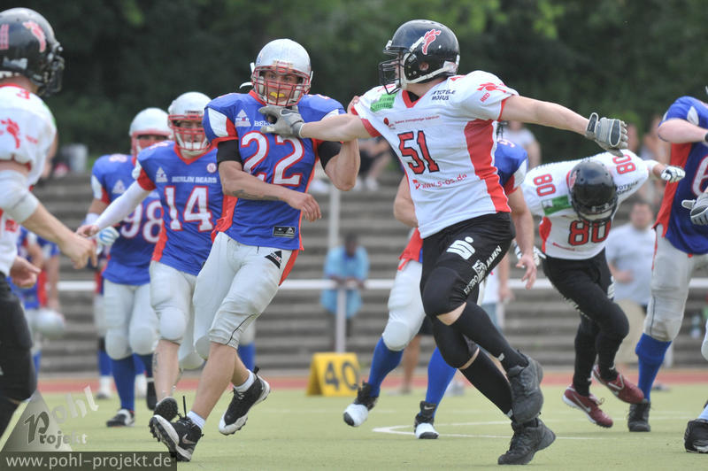 Berlin Bears vs Frankfurt-Oder Red Cocks am 28.7.2012 in Berlin - DEGEWO-Stadion Lipschitzallee, Football - Bilder vom Spiel
