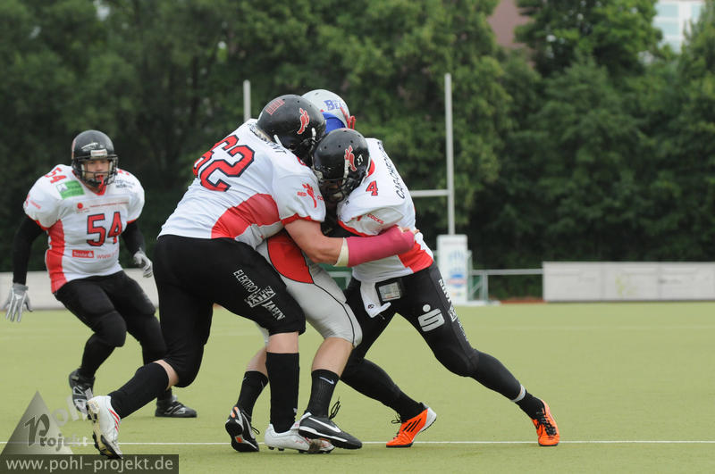 Berlin Bears vs Frankfurt-Oder Red Cocks am 28.7.2012 in Berlin - DEGEWO-Stadion Lipschitzallee, Football - Bilder vom Spiel