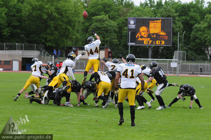 Berlin Rebels vs Berlin Adler am 6.5.2012 in Berlin - Mommsenstadion, Football - Bilder vom Spiel