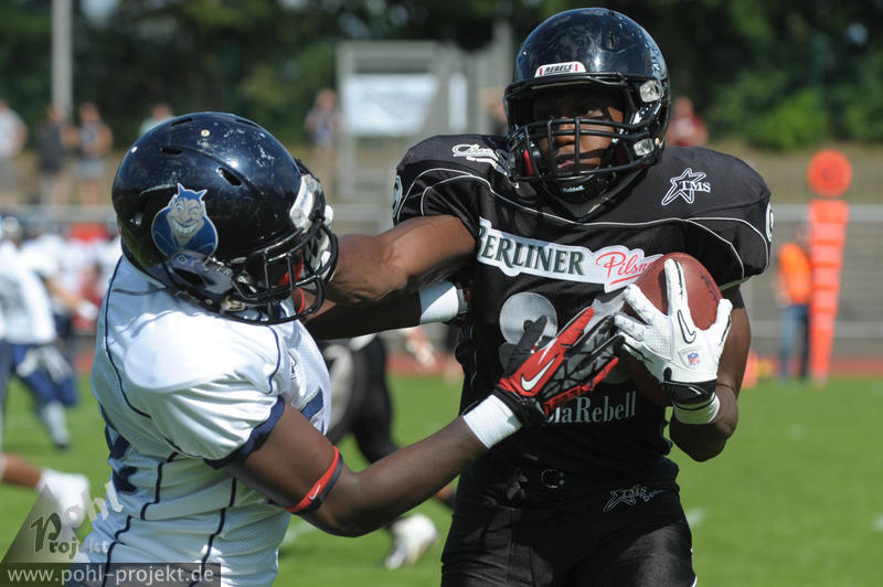 Berlin Rebels vs Hamburg Blue Devils am 25.8.2013 in Berlin - Mommsenstadion, Football - Bilder vom Spiel