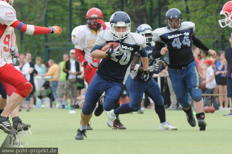Berlin Thunderbirds vs Halle Falken am 29.4.2012 in Berlin - Sportplatz an der Britzer Mühle, Football - Bilder vom Spiel