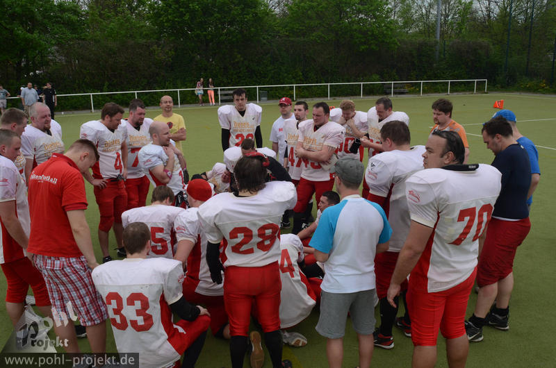 Berlin Thunderbirds vs Halle Falken am 29.4.2012 in Berlin - Sportplatz an der Britzer Mühle, Football - Bilder vom Spiel