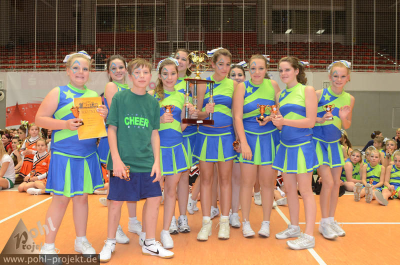 XMasCup 2011 vs Blue Pearls, Pretty Pearls, Mini Pearls und Shiny Pearls von den Dresden Monarchs, CATWALK, Kiddy Cats, Lunicats, LCV Dancer und DMC vom Lunatics Cheerleder e.V., Leonids und Cheeky Lionettes von den Leipzig Lions, Black Lions, Blue Monties, Black Maniacs und Dancing Maniacs vom CVV CheerMANIA Auerbach e.V., FlipBeez, FreeMotion und Showcolate vom SC DHfK Leipzig, Golden Dynamites, Dynaminis und Dynamix vom Cheerleader verein Dresden, Sweet Angelz, Junior Angelz, Crazy Angelz und White Angelz von Angelz Cheerleader Plauen, Wild Up von ETC Crimmitschau, FOC Four One Clover vom BV Chemnitz 99, Move it Peewees und Move it Juniors vom Move it e.V. Erfurt, MJ`s5 vom ZFC Meuselwitz, Blizzards und Calling 112 vom SpVgg Spitzgrund 72 e.V., Plantastics, Dancing Leaves SR und Dancing Leaves JR vom SV Grün Weiß Mohsdorf, Little Arrows vom Arrows Pirna e.V., Peaches Juniors GS vom The Peaches Cheerleader Zwickau, SG xyztitle the flying V aus Riesa am 3.12.2011 in Dresden - Margon-Arena, Football - Bilder vom Spiel