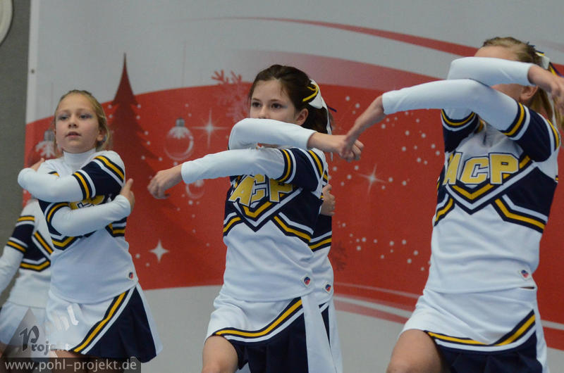 XMasCup 2011 vs Blue Pearls, Pretty Pearls, Mini Pearls und Shiny Pearls von den Dresden Monarchs, CATWALK, Kiddy Cats, Lunicats, LCV Dancer und DMC vom Lunatics Cheerleder e.V., Leonids und Cheeky Lionettes von den Leipzig Lions, Black Lions, Blue Monties, Black Maniacs und Dancing Maniacs vom CVV CheerMANIA Auerbach e.V., FlipBeez, FreeMotion und Showcolate vom SC DHfK Leipzig, Golden Dynamites, Dynaminis und Dynamix vom Cheerleader verein Dresden, Sweet Angelz, Junior Angelz, Crazy Angelz und White Angelz von Angelz Cheerleader Plauen, Wild Up von ETC Crimmitschau, FOC Four One Clover vom BV Chemnitz 99, Move it Peewees und Move it Juniors vom Move it e.V. Erfurt, MJ`s5 vom ZFC Meuselwitz, Blizzards und Calling 112 vom SpVgg Spitzgrund 72 e.V., Plantastics, Dancing Leaves SR und Dancing Leaves JR vom SV Grün Weiß Mohsdorf, Little Arrows vom Arrows Pirna e.V., Peaches Juniors GS vom The Peaches Cheerleader Zwickau, SG xyztitle the flying V aus Riesa am 3.12.2011 in Dresden - Margon-Arena, Football - Bilder vom Spiel