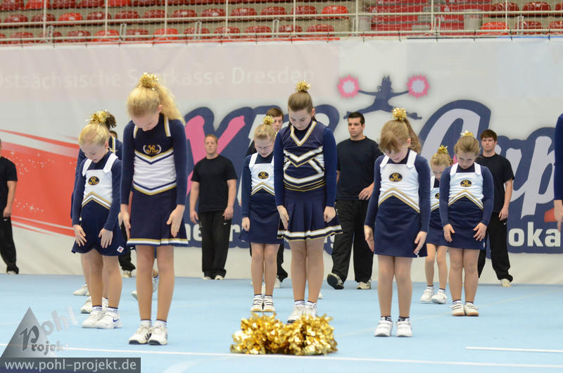 XMasCup 2011 vs Blue Pearls, Pretty Pearls, Mini Pearls und Shiny Pearls von den Dresden Monarchs, CATWALK, Kiddy Cats, Lunicats, LCV Dancer und DMC vom Lunatics Cheerleder e.V., Leonids und Cheeky Lionettes von den Leipzig Lions, Black Lions, Blue Monties, Black Maniacs und Dancing Maniacs vom CVV CheerMANIA Auerbach e.V., FlipBeez, FreeMotion und Showcolate vom SC DHfK Leipzig, Golden Dynamites, Dynaminis und Dynamix vom Cheerleader verein Dresden, Sweet Angelz, Junior Angelz, Crazy Angelz und White Angelz von Angelz Cheerleader Plauen, Wild Up von ETC Crimmitschau, FOC Four One Clover vom BV Chemnitz 99, Move it Peewees und Move it Juniors vom Move it e.V. Erfurt, MJ`s5 vom ZFC Meuselwitz, Blizzards und Calling 112 vom SpVgg Spitzgrund 72 e.V., Plantastics, Dancing Leaves SR und Dancing Leaves JR vom SV Grün Weiß Mohsdorf, Little Arrows vom Arrows Pirna e.V., Peaches Juniors GS vom The Peaches Cheerleader Zwickau, SG xyztitle the flying V aus Riesa am 3.12.2011 in Dresden - Margon-Arena, Football - Bilder vom Spiel