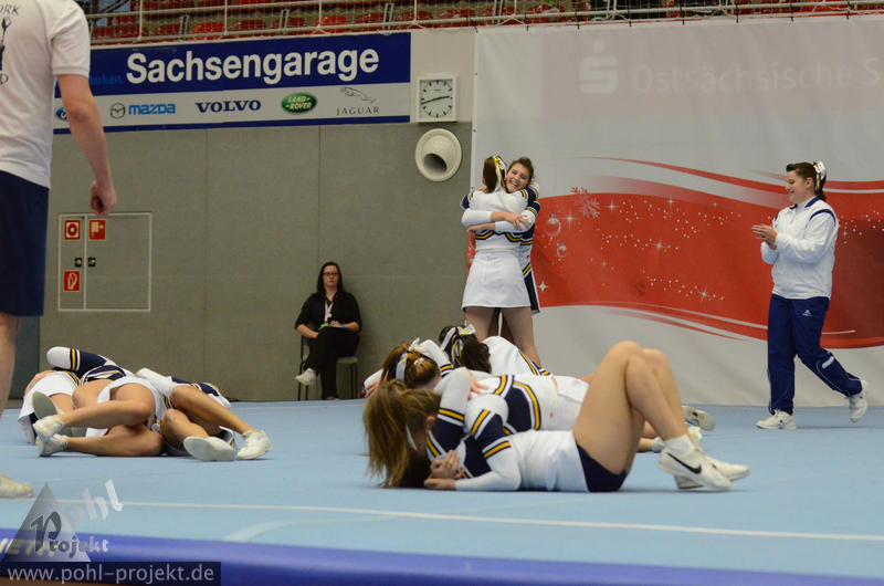XMasCup 2011 vs Blue Pearls, Pretty Pearls, Mini Pearls und Shiny Pearls von den Dresden Monarchs, CATWALK, Kiddy Cats, Lunicats, LCV Dancer und DMC vom Lunatics Cheerleder e.V., Leonids und Cheeky Lionettes von den Leipzig Lions, Black Lions, Blue Monties, Black Maniacs und Dancing Maniacs vom CVV CheerMANIA Auerbach e.V., FlipBeez, FreeMotion und Showcolate vom SC DHfK Leipzig, Golden Dynamites, Dynaminis und Dynamix vom Cheerleader verein Dresden, Sweet Angelz, Junior Angelz, Crazy Angelz und White Angelz von Angelz Cheerleader Plauen, Wild Up von ETC Crimmitschau, FOC Four One Clover vom BV Chemnitz 99, Move it Peewees und Move it Juniors vom Move it e.V. Erfurt, MJ`s5 vom ZFC Meuselwitz, Blizzards und Calling 112 vom SpVgg Spitzgrund 72 e.V., Plantastics, Dancing Leaves SR und Dancing Leaves JR vom SV Grün Weiß Mohsdorf, Little Arrows vom Arrows Pirna e.V., Peaches Juniors GS vom The Peaches Cheerleader Zwickau, SG xyztitle the flying V aus Riesa am 3.12.2011 in Dresden - Margon-Arena, Football - Bilder vom Spiel