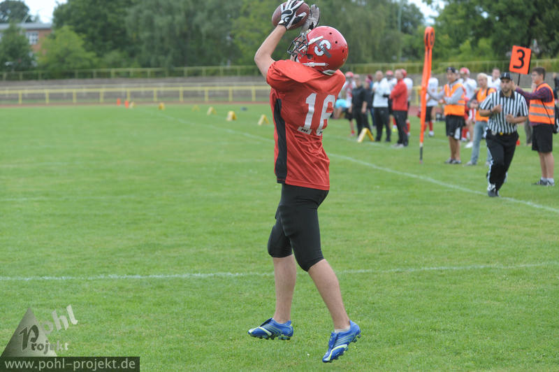 Spandau Bulldogs Jugend vs Chemnitz Varlets am 1.9.2013 in Berlin - Spandau - Helmut-Schleusener-Stadion, Football - Bilder vom Spiel