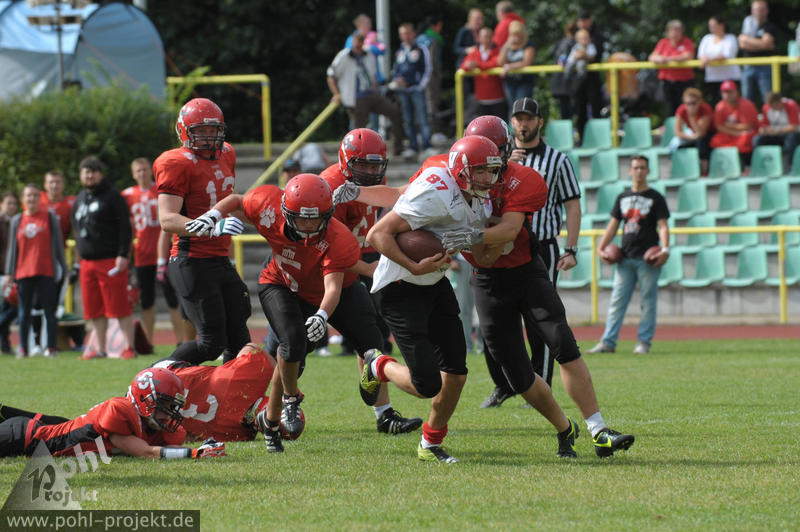 Spandau Bulldogs Jugend vs Chemnitz Varlets am 1.9.2013 in Berlin - Spandau - Helmut-Schleusener-Stadion, Football - Bilder vom Spiel