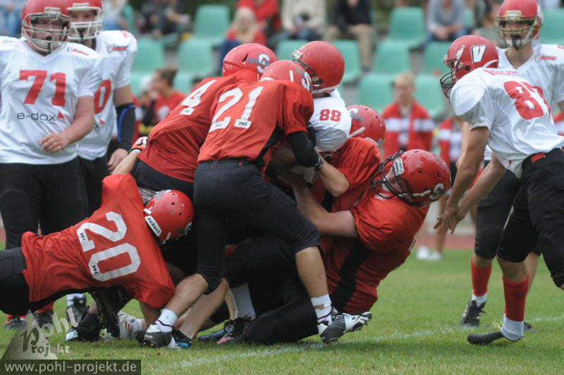 Zurück zur Hauptseite Spandau Bulldogs Jugend vs Chemnitz Varlets am 1.9.2013 in Berlin - Spandau - Helmut-Schleusener-Stadion, Football - Bilder vom Spiel