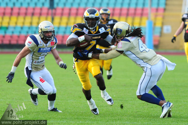 Berlin Adler vs Dresden Monarchs am 1.9.2012 in Berlin - Friedrich-Ludwig-Jahn-Stadion , Football - Bilder vom Spiel