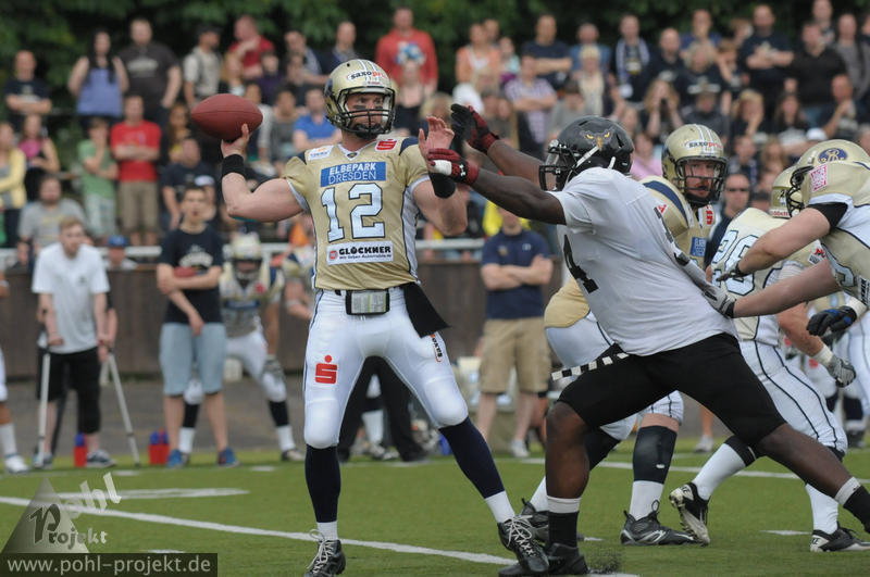 Dresden Monarchs vs Cologne Falcons am 8.6.2013 in Dresden - Bärnsdorfer Str., Football - Bilder vom Spiel