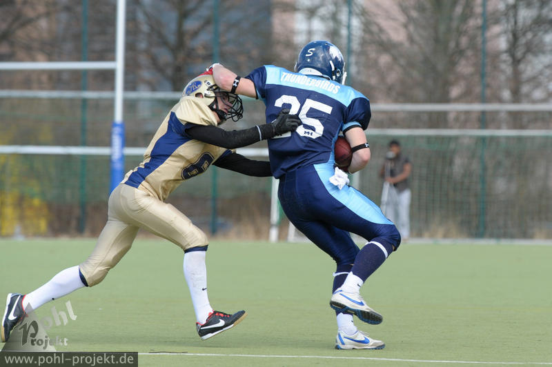 Berlin Thunderbirds Jugend vs Dresden Monarchs Juniors am 12.4.2013 in Berlin - Sportplatz an der Britzer Mühle, Football - Bilder vom Spiel