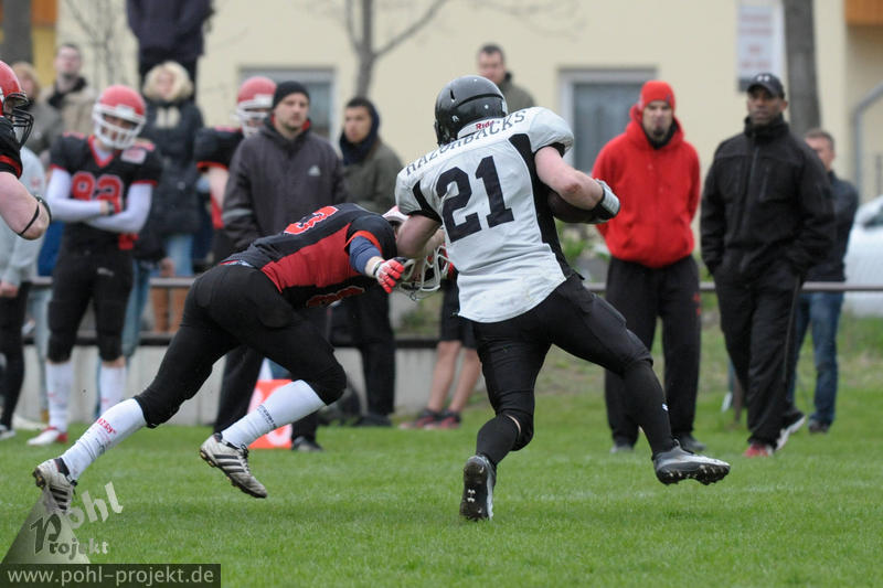 Potsdam Royals vs Erkner Razorbacks am 27.4.2013 in Potsdam, Football - Bilder vom Spiel